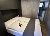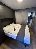 Interiér je premyslene navrhnutý a zahŕňa dve komfortné spálne, dve moderné kúpeľne, plne vybavenú kuchyňu (varná doska, chladnička, mikrovlnná rúra, kávovar) a príjemnú obývaciu izbu s TV.