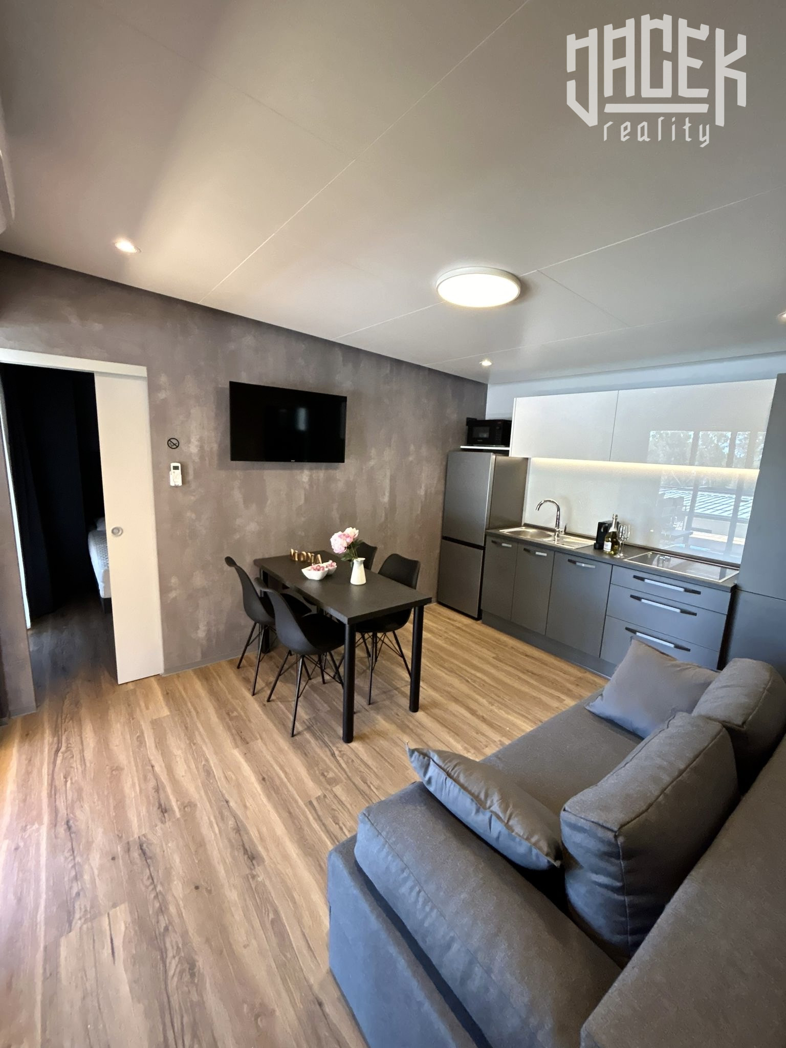 Každý z týchto štýlových mobilných domov ponúka 72 m² úžitkovej plochy, z čoho 36 m² tvorí veľkorysá terasa, ktorá sa stane prirodzeným centrom vášho letného života.